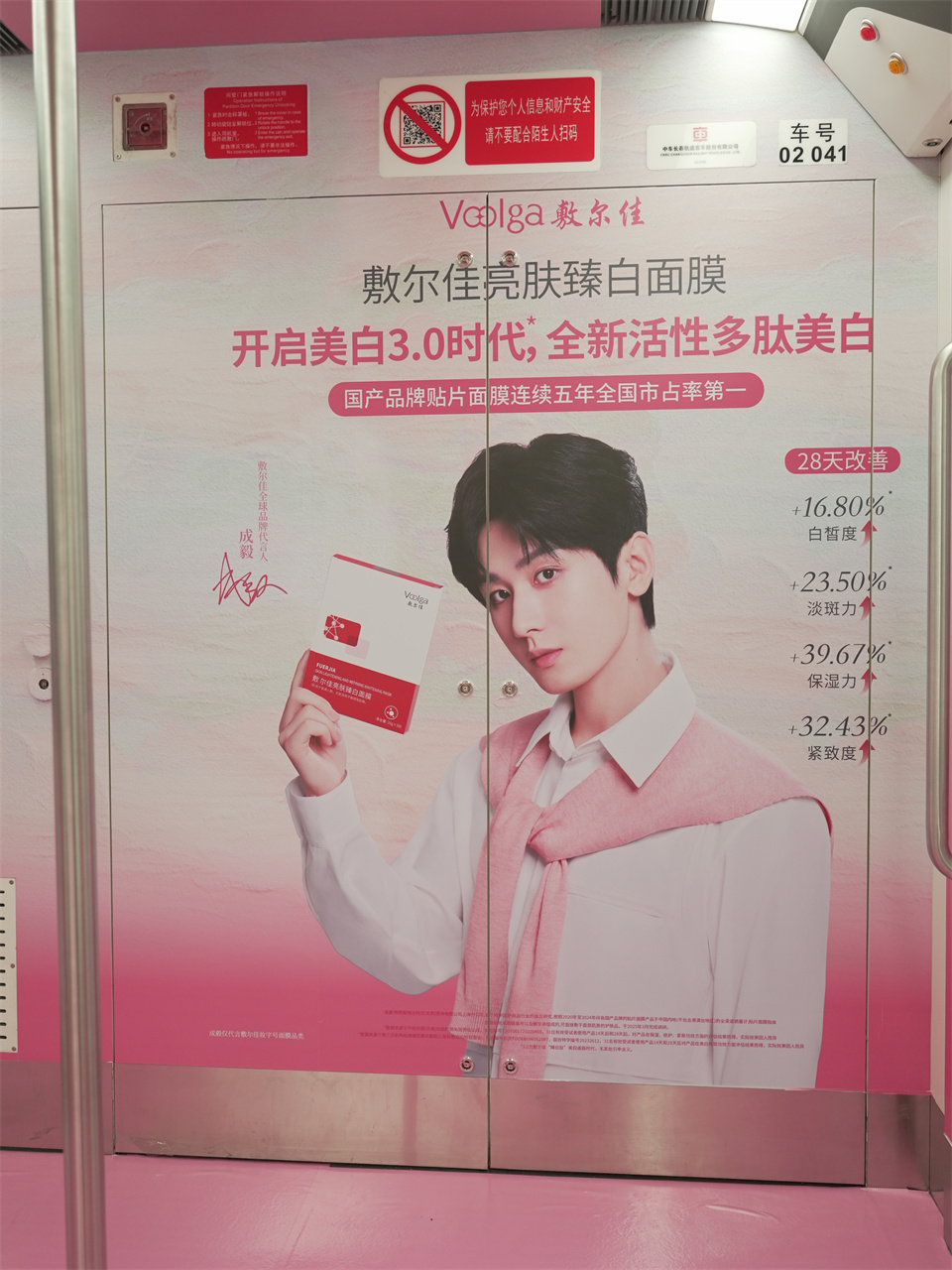 2025年4月14日,哈尔滨地铁2号线上线全新敷尔佳全球品牌代言人成毅装饰。车厢布置持续至2025年8月18日。