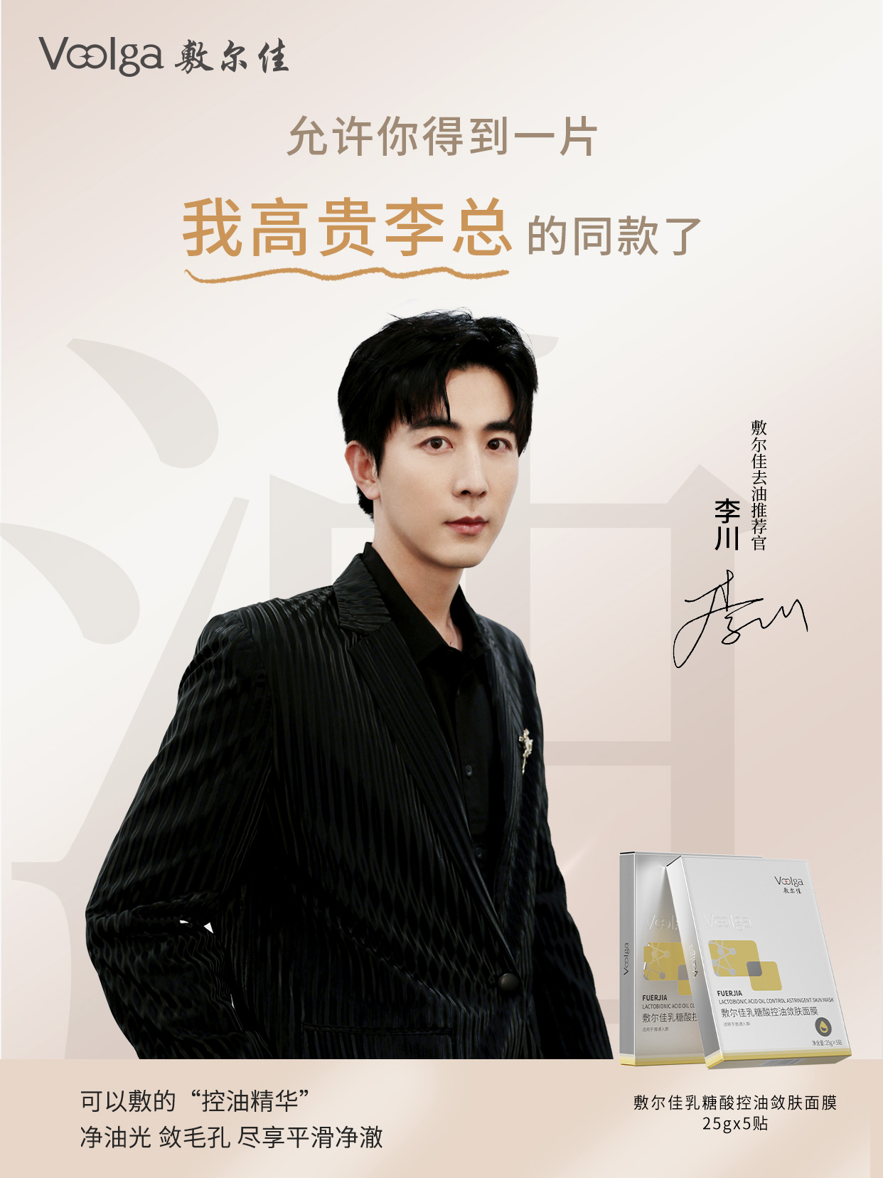 2025年1月13日,敷尔佳官宣青年演员李川成为敷尔佳去油推荐官,代言乳糖酸控油敛肤面膜。